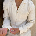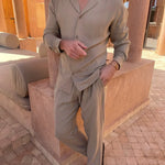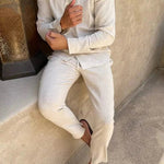 Ostanite hladni, izgledajte dobro — set iz lanu Finn™ združuje brezčasno eleganco z udobjem čez ves dan. S svojim zračnim materialom in po meri oblikovanim dizajnom je popoln za tople dni, sproščene vikende ali stilna potovanja.